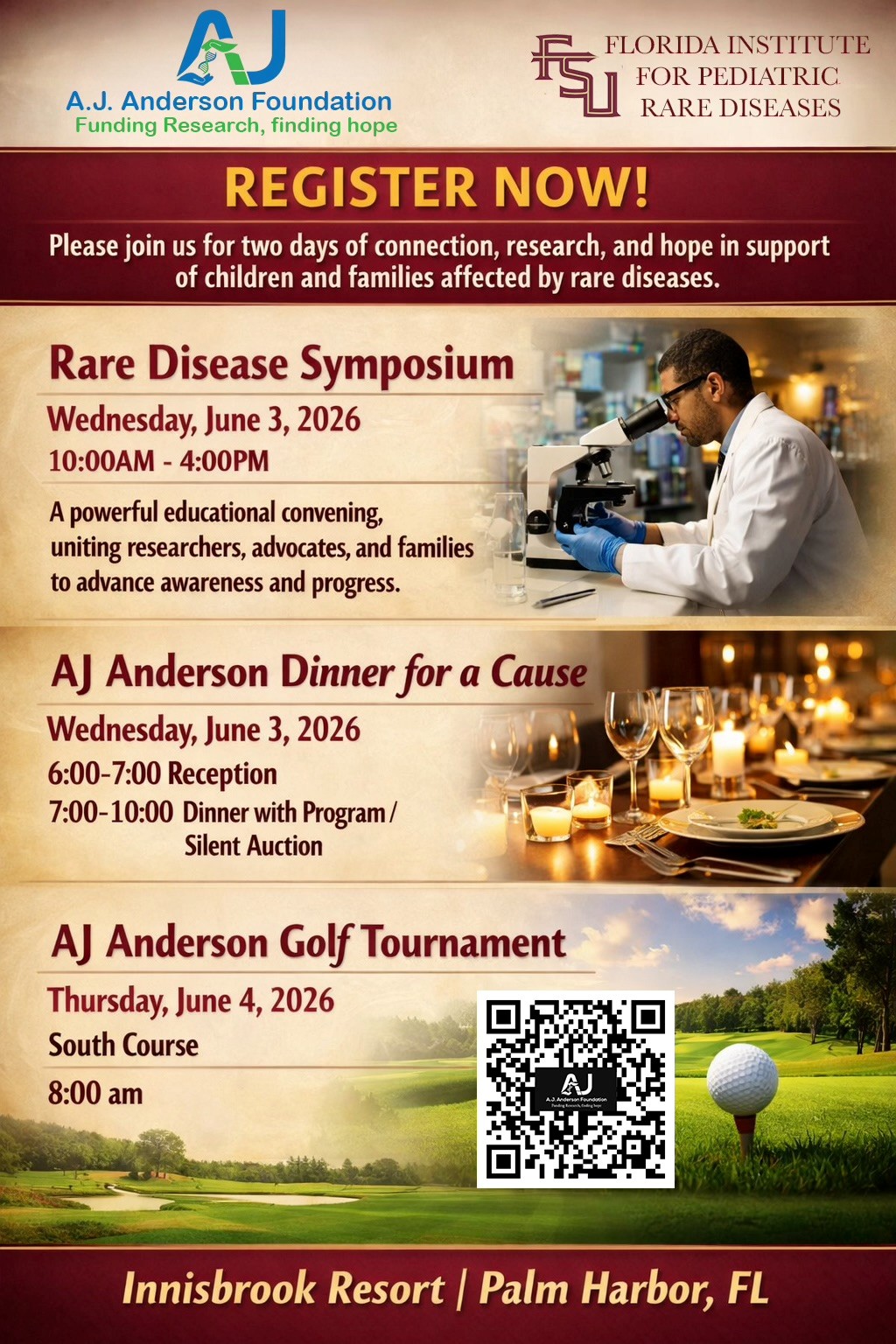Join the A.J. Anderson Foundation and the Florida Institute for Pediatric Rare Diseases for two days of connection, research, and hope in support of children and families affected by rare diseases.